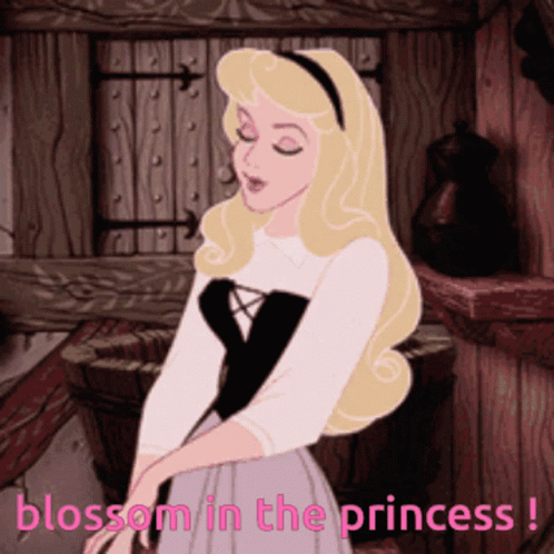 Paglalarawan ng Content: a picture of aurora from sleeping beauty with the words blossom in the princess
