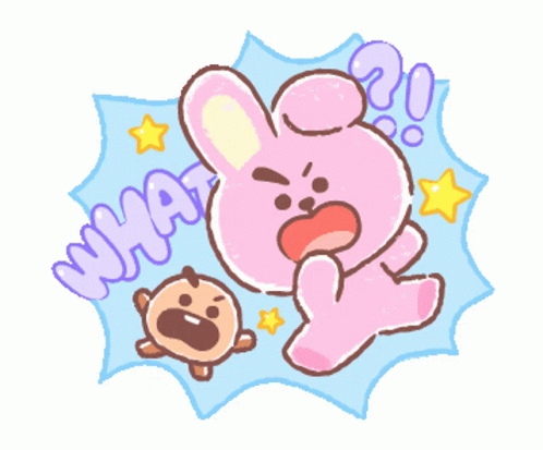 Paglalarawan ng Content: a cartoon of a pink rabbit with the word what written on it