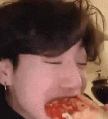 Paglalarawan ng Content: a close up of a person eating a piece of pizza .