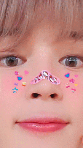 Paglalarawan ng Content: a close up of a person 's face with stickers on it