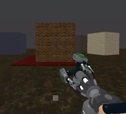 Paglalarawan ng Content: a robot arm is holding a hamburger and a brick wall in a video game .
