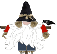 Paglalarawan ng Content: a scarecrow with a white beard and a black bird on its shoulder
