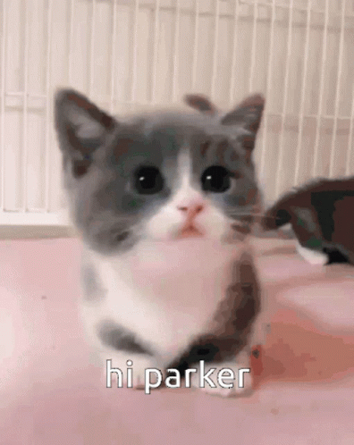 Paglalarawan ng Content: a gray and white kitten says hi parker