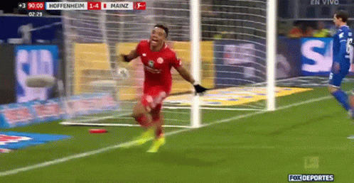 Paglalarawan ng Content: a soccer player celebrates a goal against mainz
