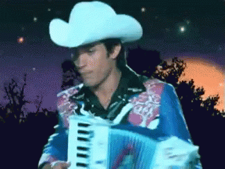 Paglalarawan ng Content: a man in a cowboy hat is playing a keyboard
