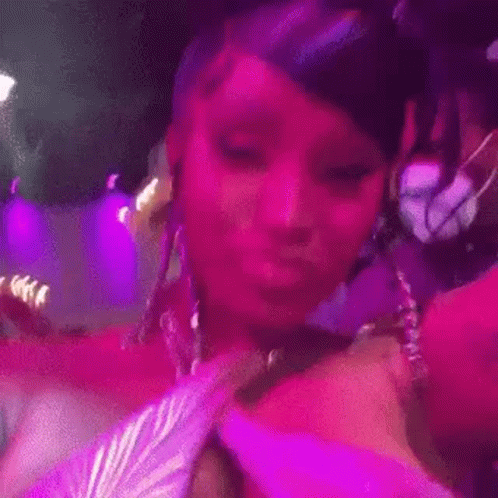 Paglalarawan ng Content: a woman in a pink dress is taking a selfie at a party in a club .