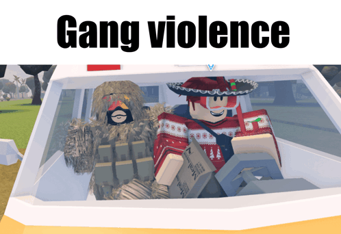 Paglalarawan ng Content: two cartoon characters in a car with the words gang violence