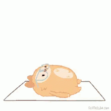 Paglalarawan ng Content: a dog is laying on a yoga mat with a thought bubble that says rather get tacos