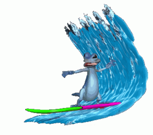 Paglalarawan ng Content: a lizard is riding a wave on a pink surfboard