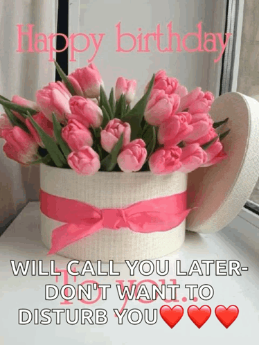 Paglalarawan ng Content: a birthday card with a box of pink flowers and the words " will call you later "