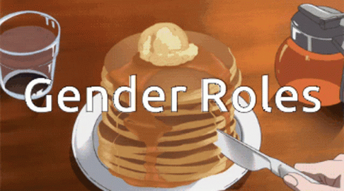Paglalarawan ng Content: a person is cutting a stack of pancakes with the words gender roles above them
