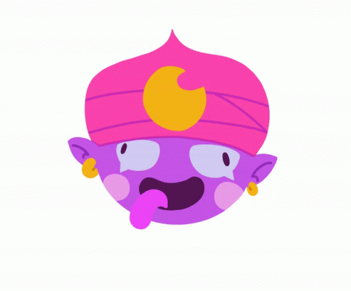 Paglalarawan ng Content: a purple cartoon character wearing a pink turban with a yellow crescent moon on top