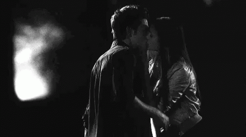 Paglalarawan ng Content: a black and white photo of a man and a woman kissing .