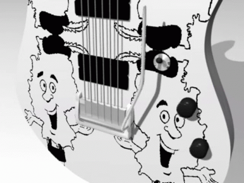 Paglalarawan ng Content: a white guitar with a cartoon face on the back