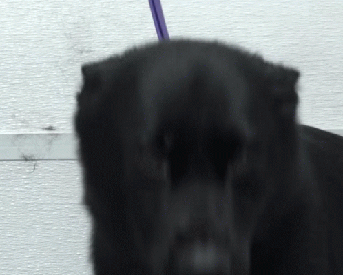 Paglalarawan ng Content: a black dog is being groomed by a person with a purple leash