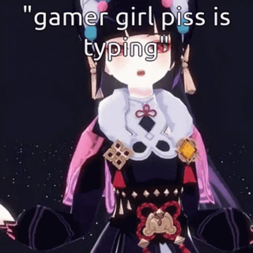 Paglalarawan ng Content: a video game character with the words `` gamer girl piss is typing '' on it .