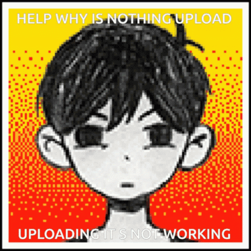 Paglalarawan ng Content: a pixelated image of a boy with the words help why is nothing upload uploading it 's not working