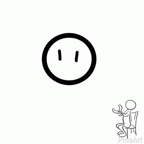 Paglalarawan ng Content: a black and white drawing of a smiley face and a man sitting in a chair