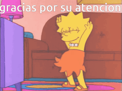 Paglalarawan ng Content: a cartoon of lisa simpson dancing with the words " gracias por su atencion " behind her