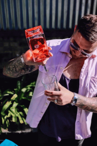 Paglalarawan ng Content: a man is pouring a drink from a bottle that says ' smirnoff ' on the label