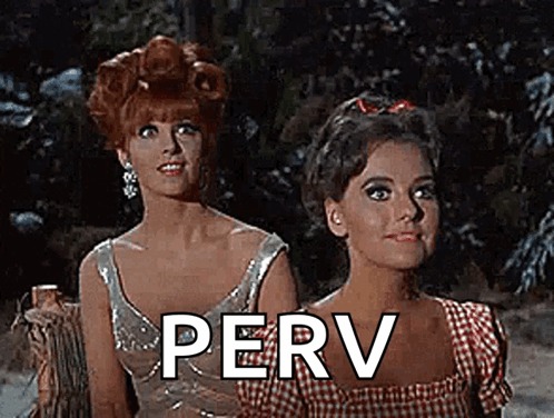 Paglalarawan ng Content: two women are standing next to each other with the word perv written on the bottom .