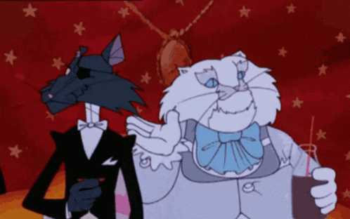 Paglalarawan ng Content: two cartoon cats are standing next to each other and one is holding a drink