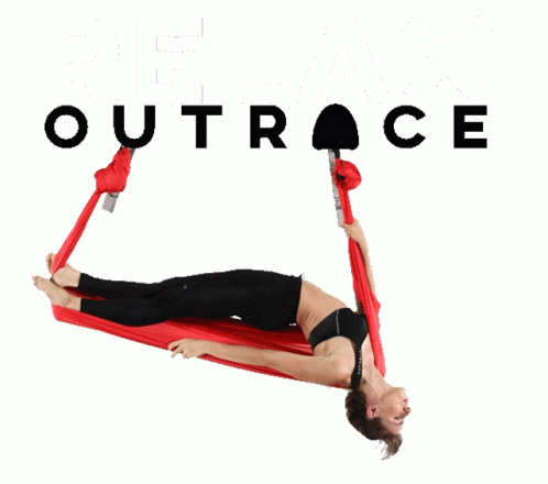 Paglalarawan ng Content: a woman is hanging upside down on a red cloth with the word outrace written above her