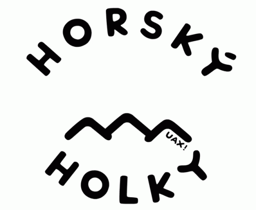 Paglalarawan ng Content: a black and white logo for horsky holky with a stick figure carrying a box