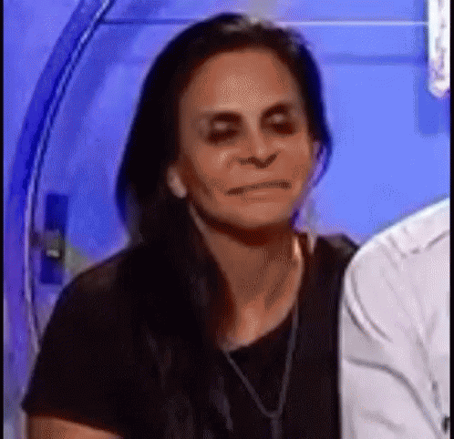 Paglalarawan ng Content: a woman with a black shirt on is making a funny face while standing next to a man .