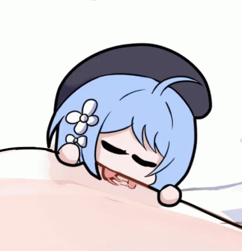 Paglalarawan ng Content: a cartoon of a girl with blue hair sticking her tongue out while sleeping