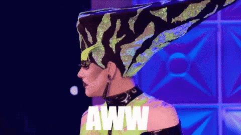 Paglalarawan ng Content: a drag queen wearing a zebra print hat with the word aww written on it .