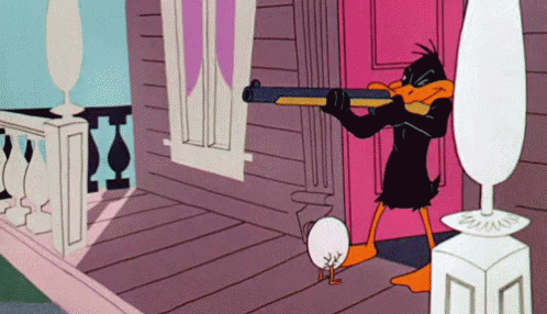 Paglalarawan ng Content: a cartoon character is holding a gun in front of a pink door