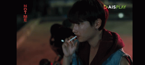 Paglalarawan ng Content: a man is smoking a cigarette in front of a screen that says not me