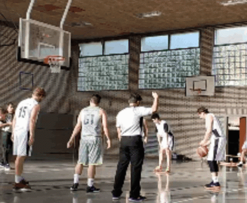 Paglalarawan ng Content: a group of men are playing basketball in a gym and one of them has the number 15 on his shirt