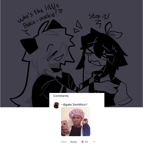 Paglalarawan ng Content: a drawing of two people with the words " who 's the little pookie - wookie " above them