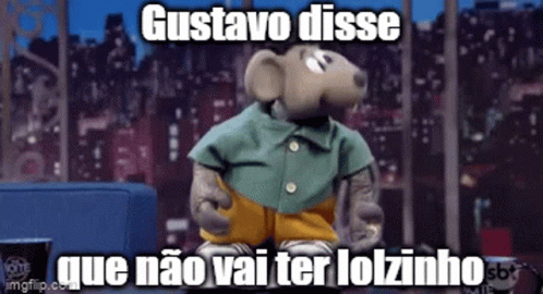 Paglalarawan ng Content: a stuffed mouse is sitting on a couch and says gustavo disse que não vai ter lolzinho