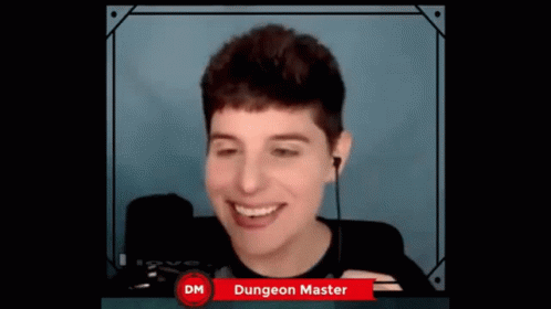 Paglalarawan ng Content: a young man is smiling in front of a screen that says " dungeon master "