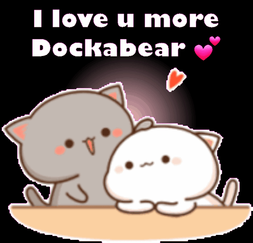Paglalarawan ng Content: a couple of cats sitting next to each other with the words i love u more dockabear