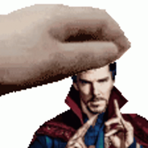 Paglalarawan ng Content: a hand is holding a man 's head in a pixel art style .