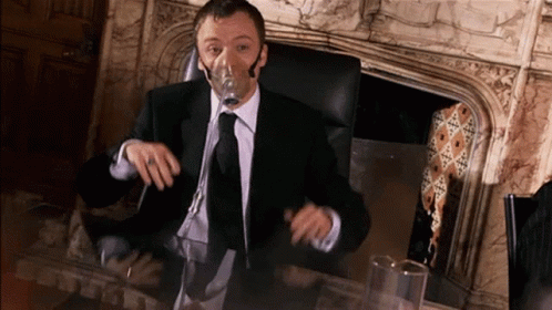 Paglalarawan ng Content: a man in a suit and tie wears an oxygen mask