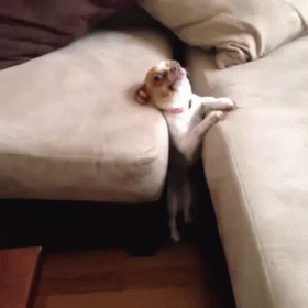 Paglalarawan ng Content: a small dog sitting on the edge of a couch looking at the camera