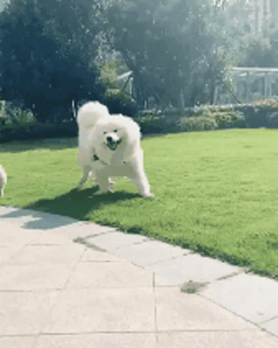 Paglalarawan ng Content: two white dogs are running in a grassy area