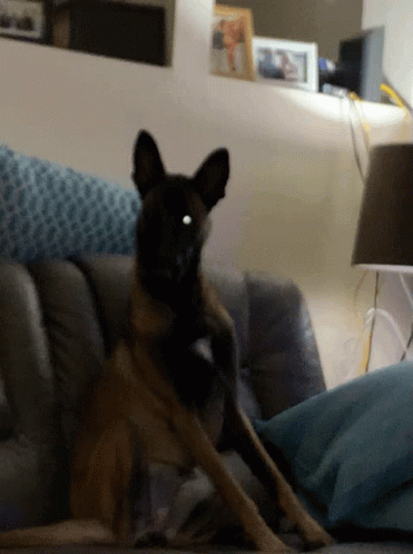 Paglalarawan ng Content: a dog is sitting on a couch with a lamp in the background