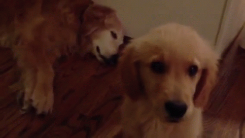 Paglalarawan ng Content: two dogs are standing next to each other on a wooden floor in a room .
