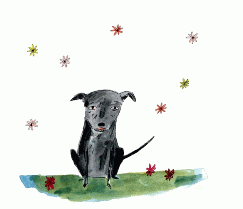 Paglalarawan ng Content: a drawing of a black dog with flowers around it