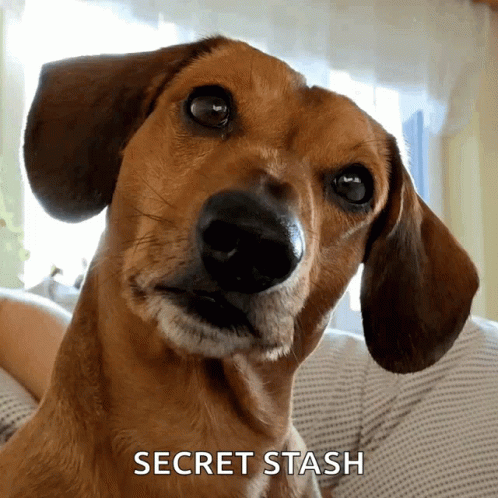 Paglalarawan ng Content: a close up of a dog 's face with the words secret stash below it