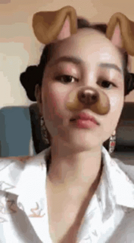 Paglalarawan ng Content: a woman wearing a dog mask on her face is making a funny face .