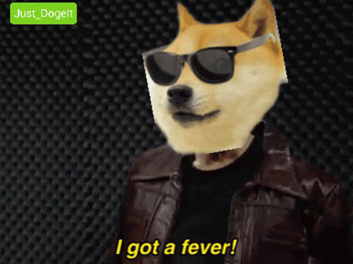 Paglalarawan ng Content: a doge wearing sunglasses and a jacket says i got a fever