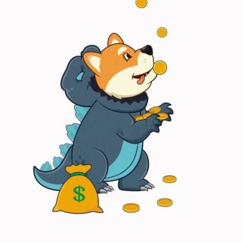 Paglalarawan ng Content: a cartoon of a dog dressed as a dinosaur holding coins