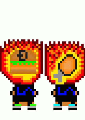 Paglalarawan ng Content: a pixel art drawing of a hamburger and a person